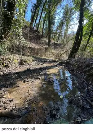 Guardando con attenzione tra i ristagni di acqua ferma, sarà possibile scoprire uova di rana. La tutela del mondo degli anfibi è fondamentale poiché sono tra i gruppi di vertebrati più a rischio di estinzione a livello globale. Oltre alla presenza degli anfibi, diversi sono i segni del passaggio di caprioli e cinghiali così come le tracce lasciate da volpi e piccoli mammiferi come faine, roditori e tassi.