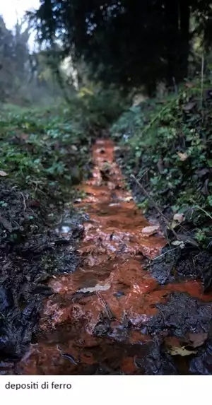 il Rio con i suoi depositi di ferro e il suo scorrere, i punti in cui l’acqua sgorga naturalmente dal suolo e per questo è presente tutto l’anno.